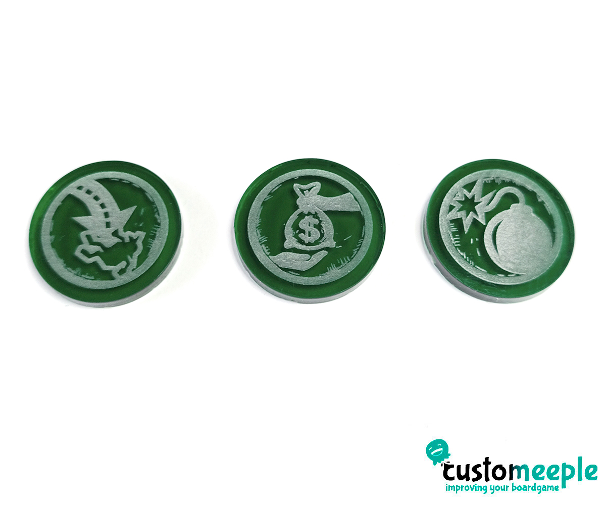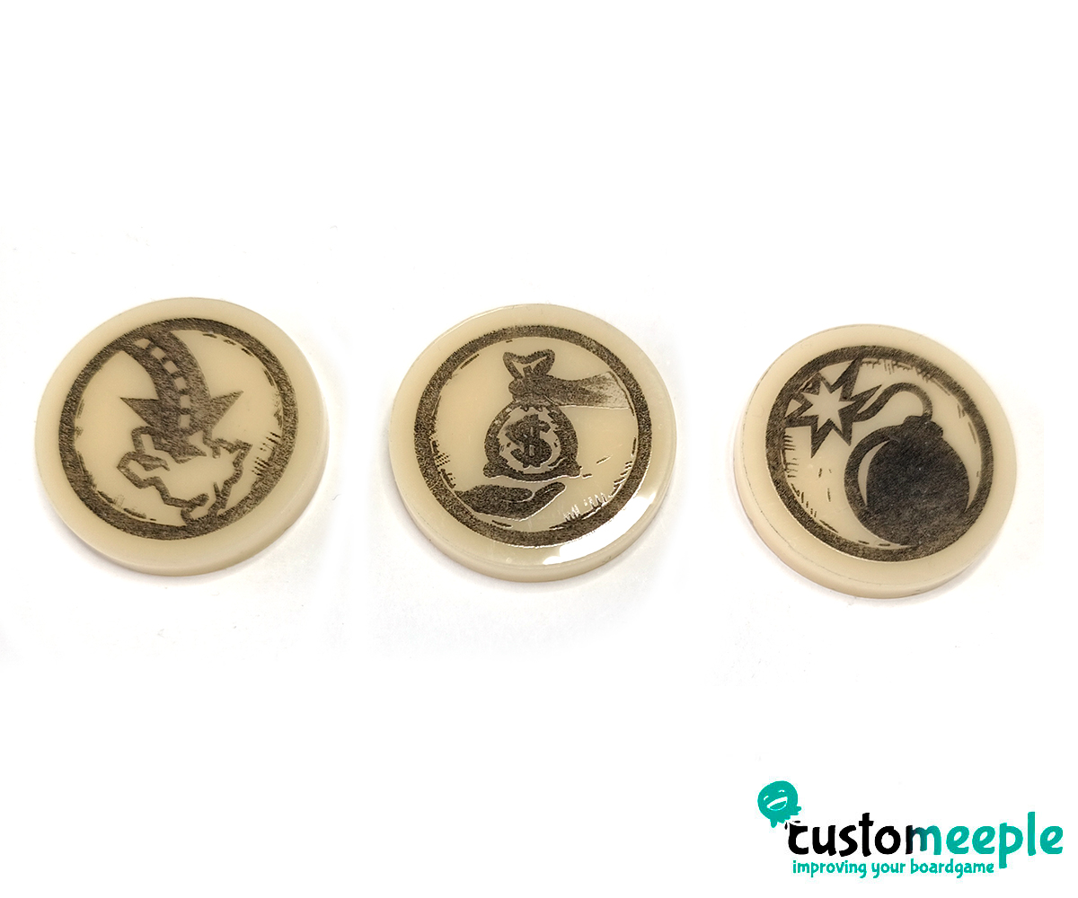 Tamaño: Tokens redondos de 25 mm de radio