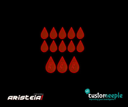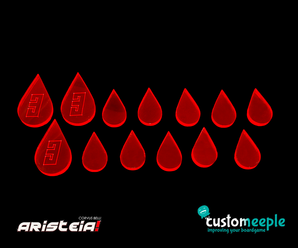 This set included 13 acrylic Red Fluor tokens perfect to indicate damage in the aristeia! game.