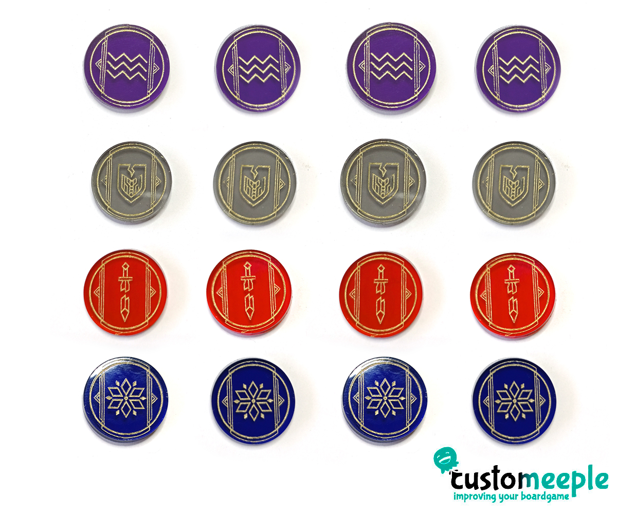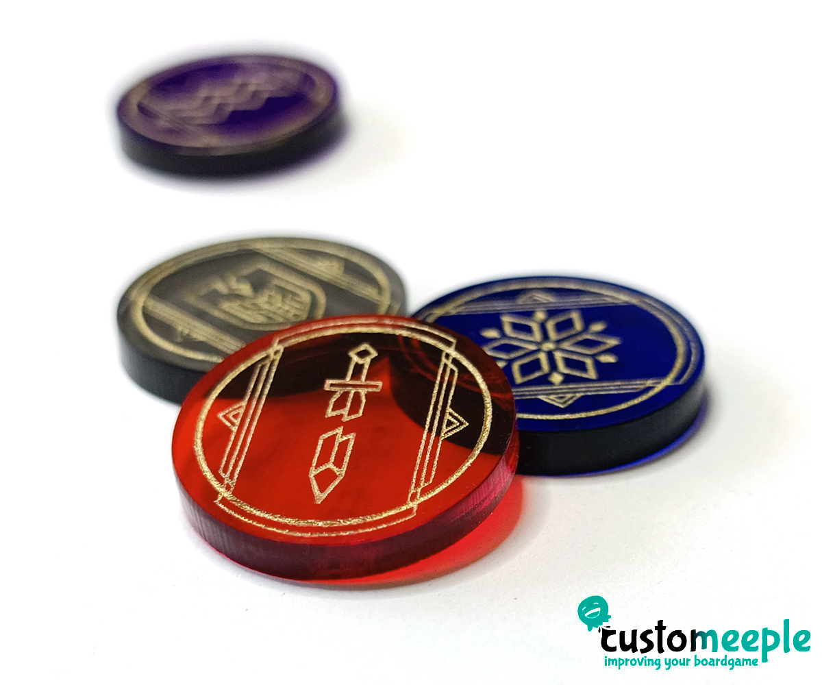 All tokens are laser-cut from high-quality acrylic and engraved for durability and fast, intuitive play. all painted by hand in gold.