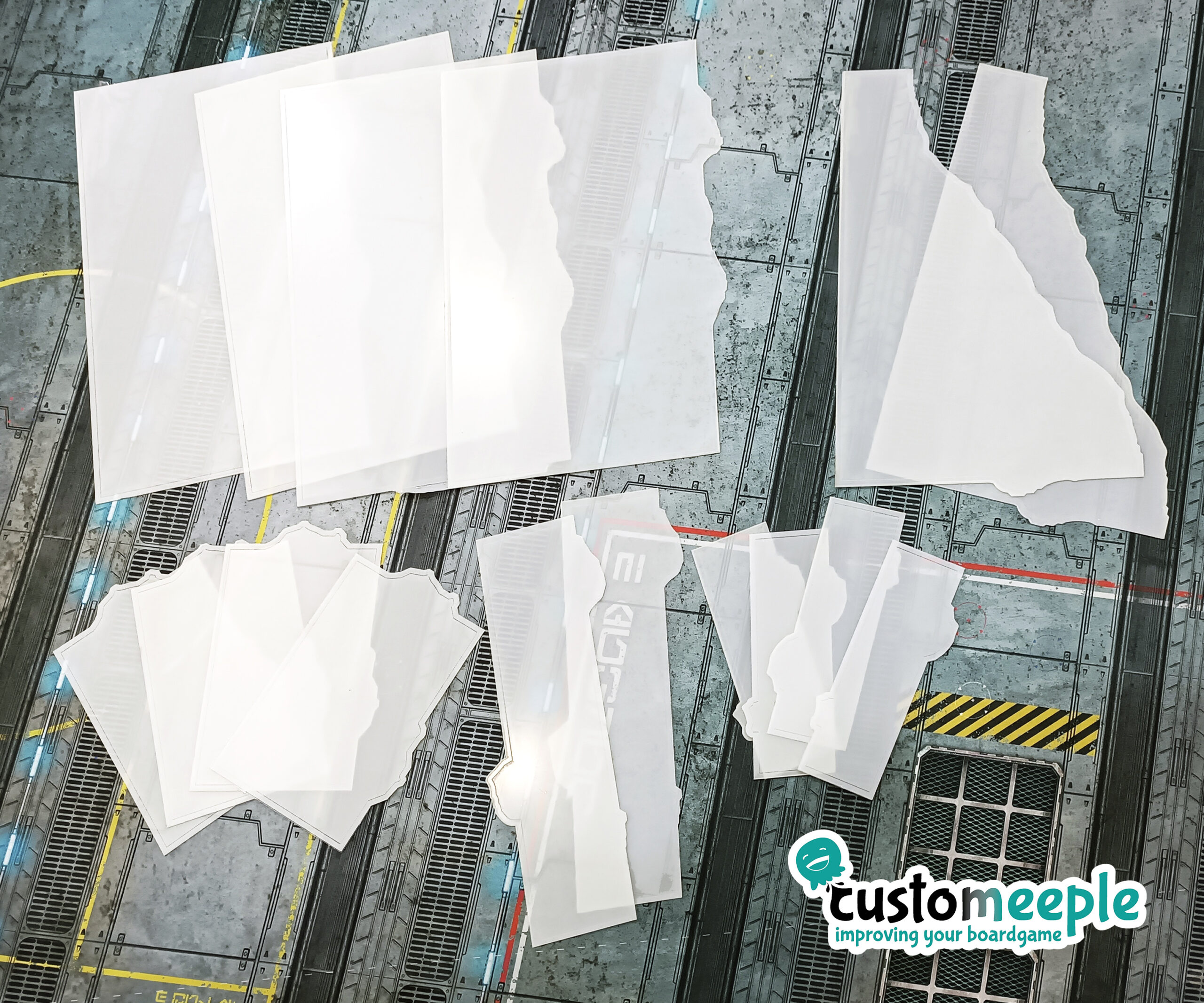 These footprints are made from 0.5 mm flexible transparent plastic, giving you a very low-profile solution that keeps the table clean and easy to play on.